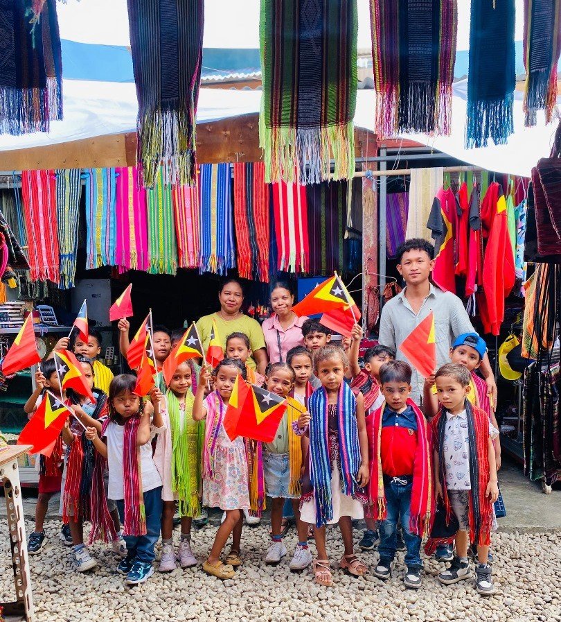 Atu introdús kultura lokál husi idade ki’ik, estudante CRECHE hala’o vizita edukativu ba Merkadu Tais iha Colmera, Dili. Tema ba atividade ne’e mak “Kultura Timorense:…