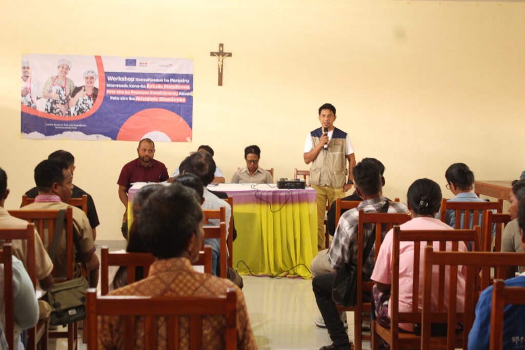Programa Manajer WVTL iha Covalima Sr. Joao Moniz, hato’o introdusaun programa POWER nian iha atividade workshop. Foto: Lensa Fokupers Covalima, 24 Fevereiru 2026 – World…