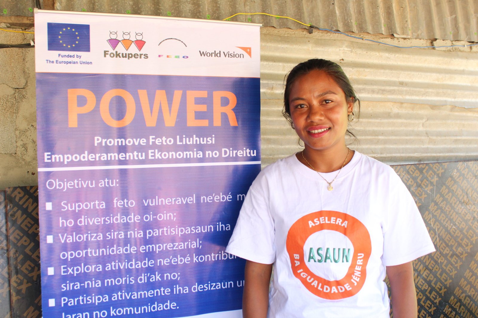 Projetu POWER ne’ebé finansia husi Uniaun Europeia no implementa husi World Vision Timor-Leste, Fokupers, no FEEO, fó kbiit ba feto sira iha Covalima no Oecusse atu buka oportunidade empreendedorizmu, harii meius subsisténsia, no partisipa iha desizaun sira ne’ebé afeta sira-nia moris.